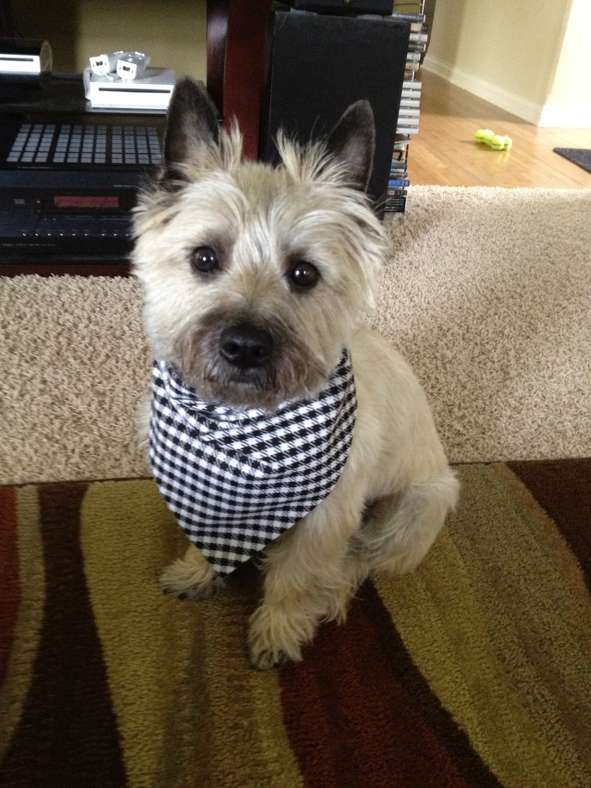 I went to the local farmers market here on Saturday and bought Señor Bruno an awesome little scarf. Or so I thought. Until Jake told me he looks like a "gay cowboy." Personally, I like the scarf, but whatever. So this is Señor Bruno, modeling his new doggy scarf. He's more fashionable than I am now!
